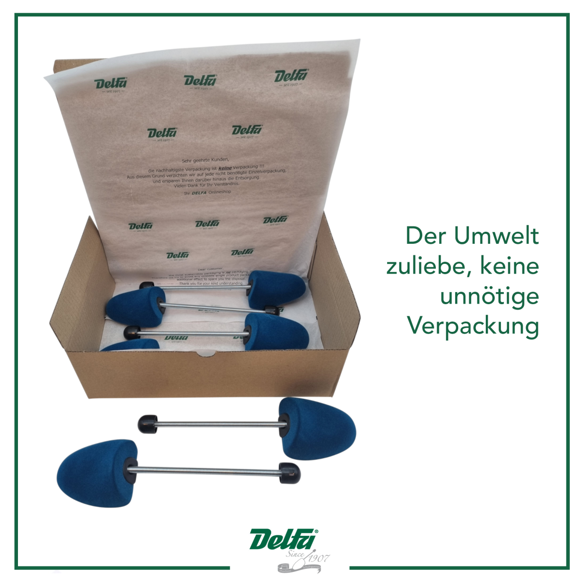 Daher werden unsere Schaumstoffspanner ohne überflüssige Kunststoffverpackung geliefert.