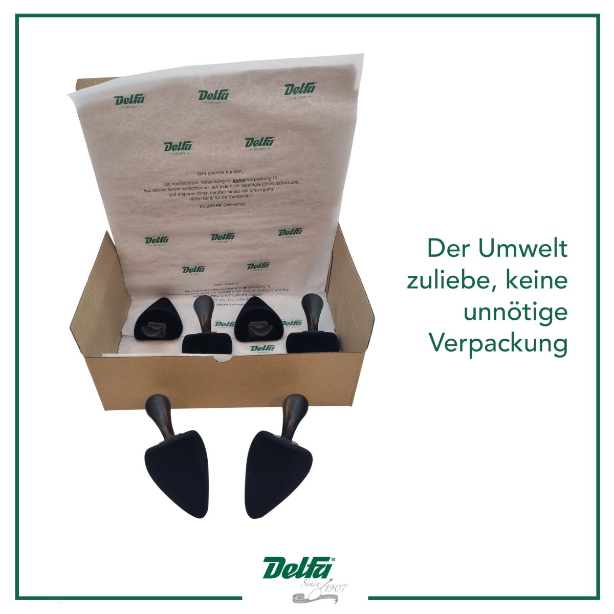 Daher werden unsere Schaumstoffspanner ohne überflüssige Kunststoffverpackung geliefert.