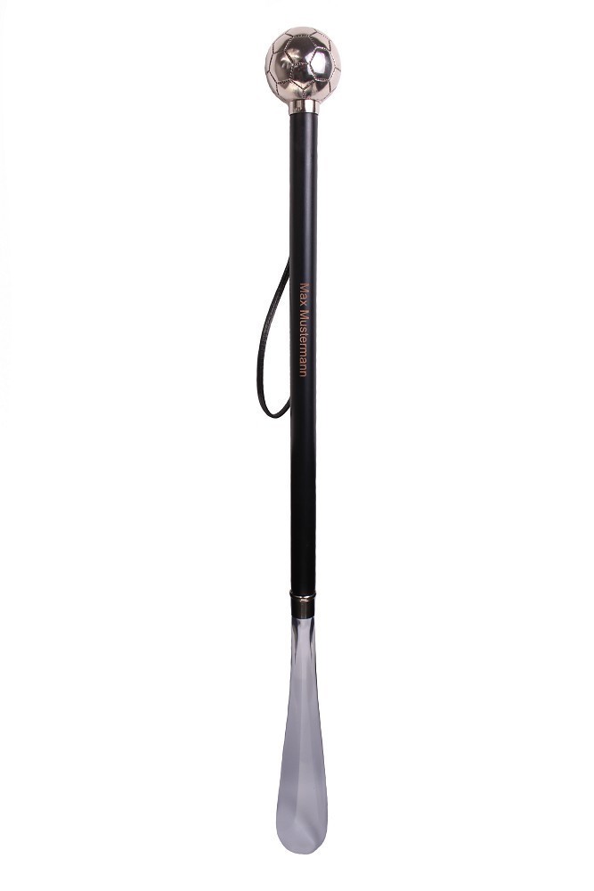 Produktinformationen "Design Schuhanzieher Motiv Fußball mit Gravur - Schuhlöffel - Anziehhilfe mit Wunschtext"