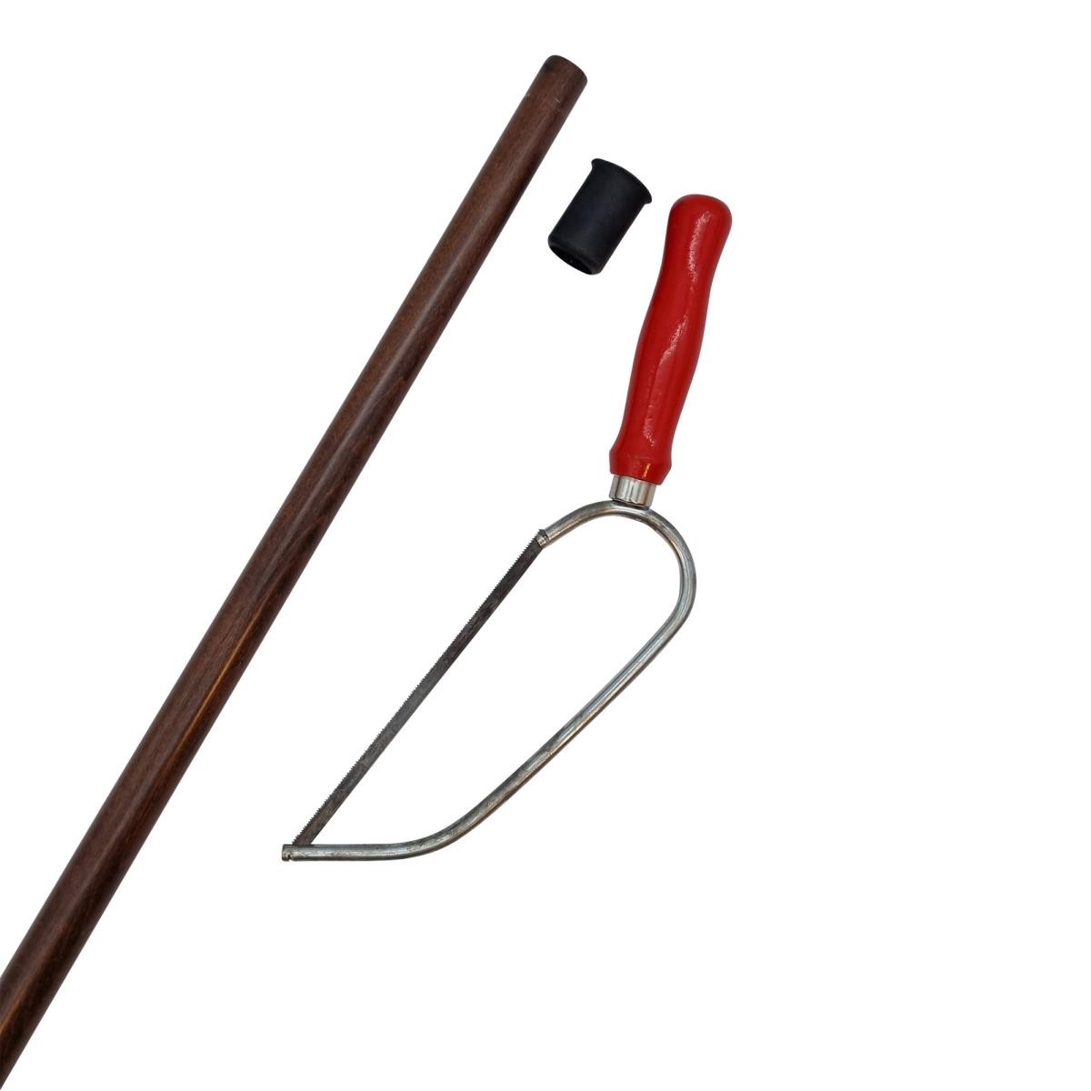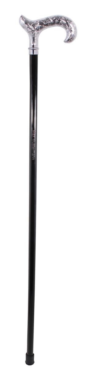 Der Holz Schaft ist schwarz lackiert. Der silberne Griff liegt gut in der Hand. Für einen sicheren Stand sorgt der Gummifuß, welcher sich ohne Schwierigkeiten austauschen und erneuern lässt.