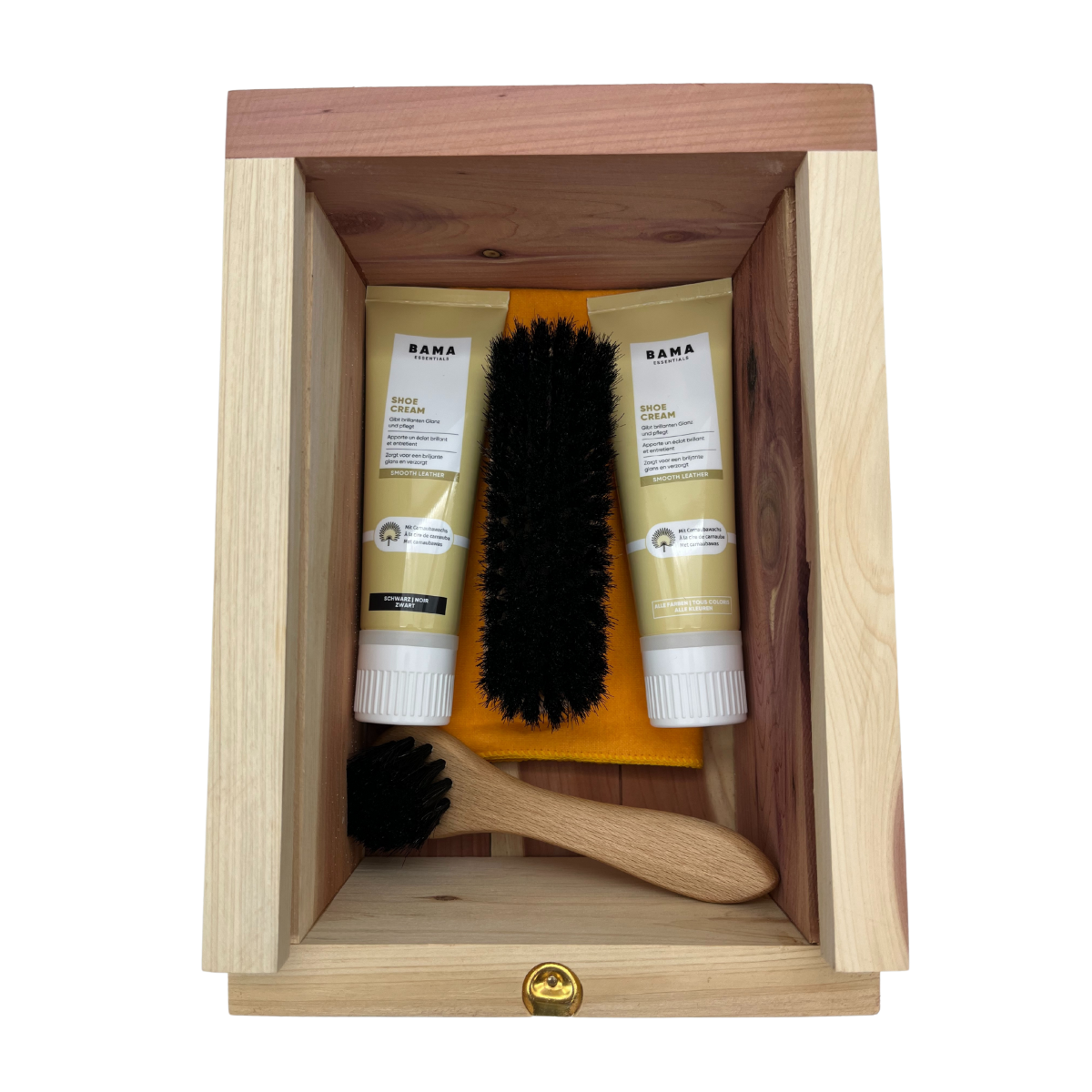 Individuell gravierte Schuhpflege Kiste aus Zedernholz mit Inhalt