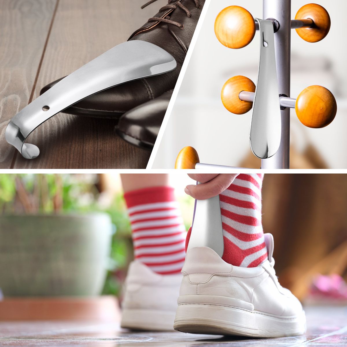 Die glatte und glänzende Oberfläche des Schuhlöffels ist schick und liegt gut in der Hand. Dank der komfortablen Länge von 52 cm kommt man mit dem Schuhlöffel mühelos in die Schuhe und das tiefe Bücken bleibt einem erspart.