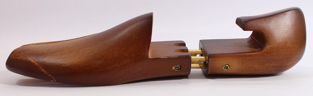 Der Schuhleisten ist aus natürlichemHartholz mit doppelter Teleskopfeder für eine optimale Spannung. Dasausgeformte Fersenrückteil schont den Schuh und verhindert Druckstellen. Dasgeteilte und gefederte Vorderblatt passt sich dem Schuh optimal an und verhindertKnicke und Falten. Die Schuhe behalten lange ihre ursprüngliche Form. DieOberfläche ist mahagonifarben antik lackiert.