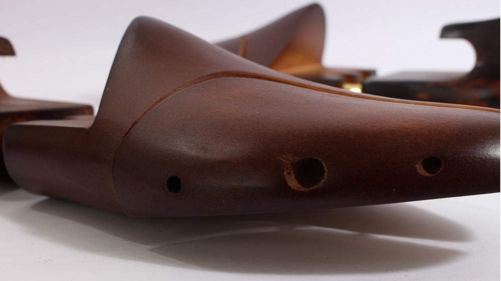 Die Schuhformer stammen auseiner Produktion, die nicht einwandfrei war. Astlöcher gehören nicht zu denProduktionsfehlern, sondern sind ein Merkmal für natürliches Holz.