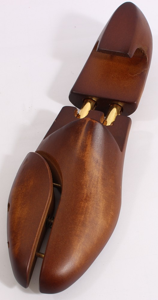 Der Schuhleisten ist aus natürlichemHartholz mit doppelter Teleskopfeder für eine optimale Spannung. Dasausgeformte Fersenrückteil schont den Schuh und verhindert Druckstellen. Dasgeteilte und gefederte Vorderblatt passt sich dem Schuh optimal an und verhindertKnicke und Falten. Die Schuhe behalten lange ihre ursprüngliche Form. DieOberfläche ist mahagonifarben antik lackiert.
