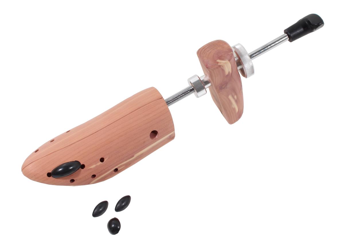 Der Schuhdehner ist mit einer stabilen Zwei-Wege Mechanik aus Metall ausgestattet und hat ein Vorderblatt aus hochwertigem, unbehandeltem Zedernholz. Mit dem Schuhstrecker und den mitgelieferten vier unterschiedlich großen Auflagen sind sie in der Lage, ihre Schuhe an Druckstellen punktuell und präzise zu weiten und / oder in der Länge anzupassen. Für ein komfortableres Tragegefühl, ohne dass sich schmerzhafte Blasen bilden.