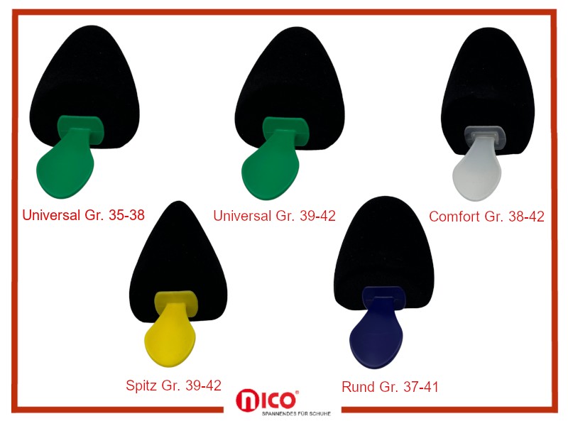 GRÖSSE UND FORM: Produkte sind speziell für Herrenschuhe hergestellt. Die Former sind asymmetrisch, das heißt in rechts und links zu unterscheiden.